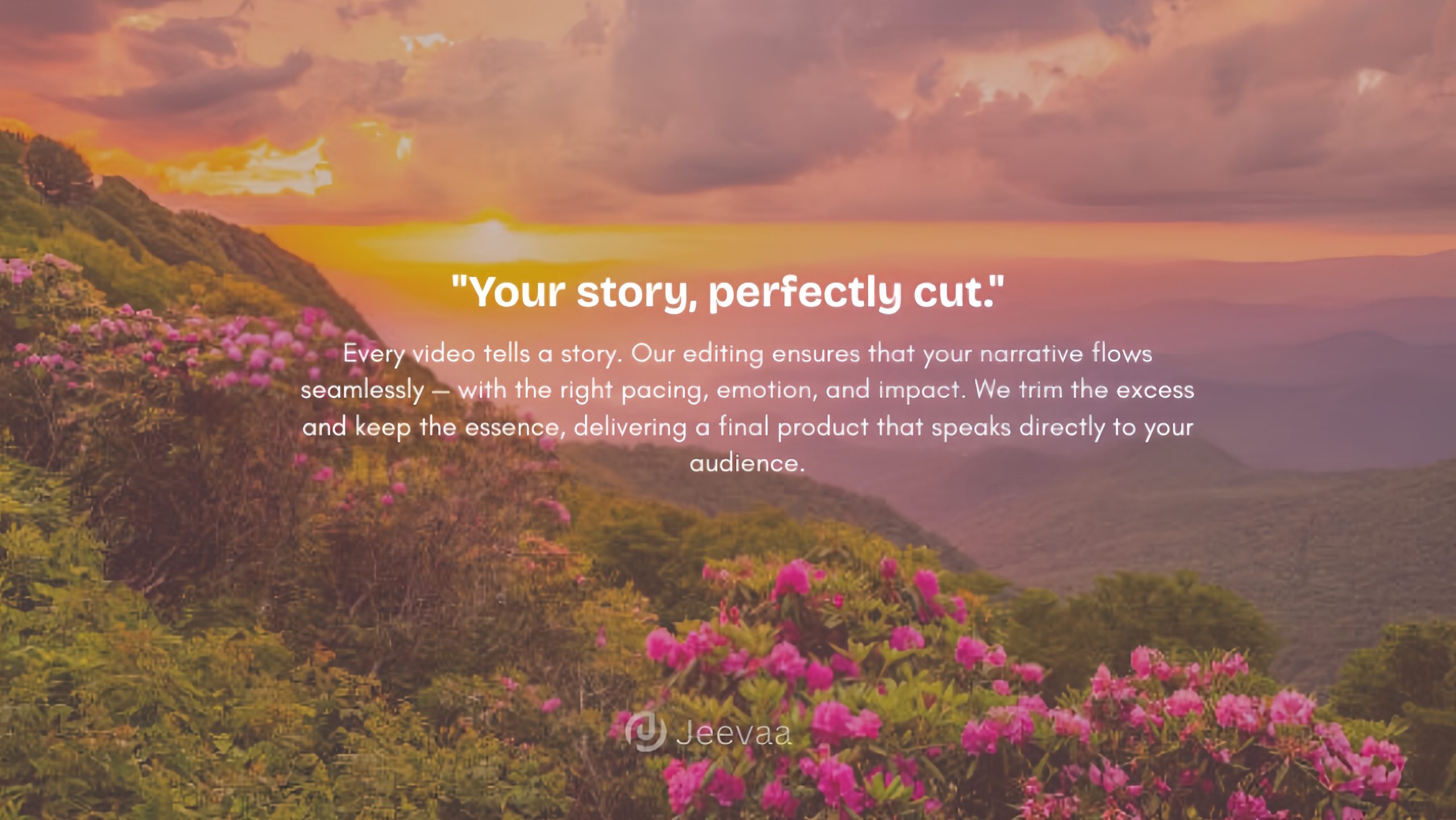 At Jeevaa, we keep things creative, professional, and personal — because your story deserves more than just editing. It deserves to be seen.